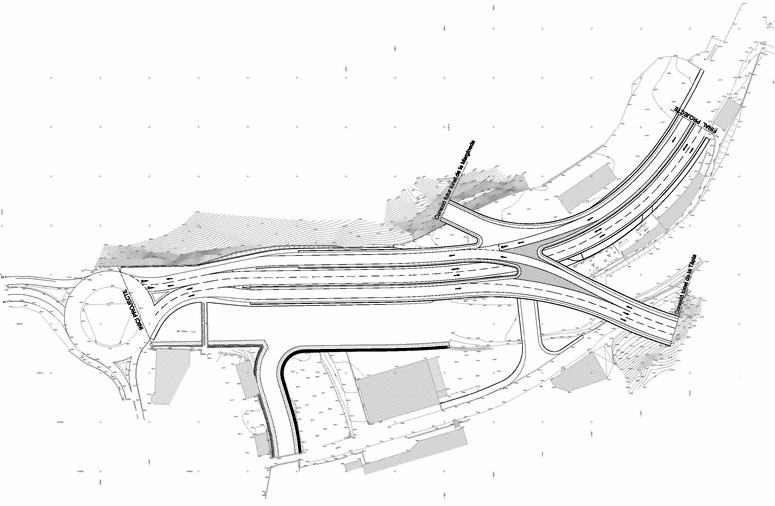 Structure: steel tubes columns, composite deck with steel box and reinforced concrete slab, steel structure road bridge
