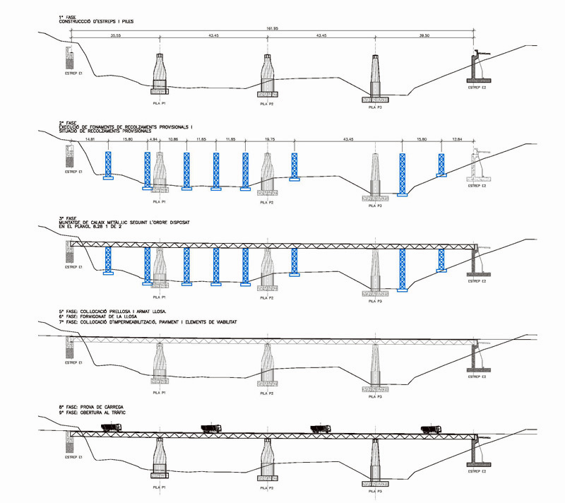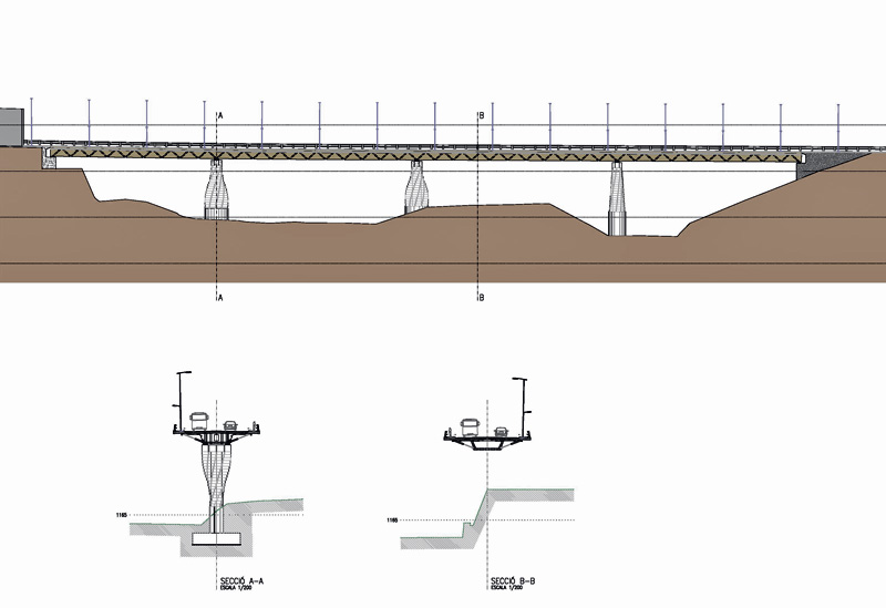 Estructura: pilas de hormigón, tablero con cajón de acero y losa colaborante de hormigón armadocomposite deck with steel box and reinforced concrete slab
