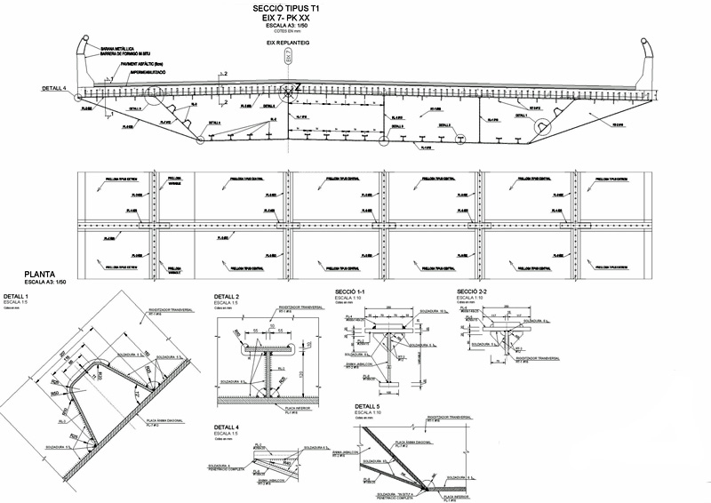 Structure: piles en tubes d'acier, tablier mixte avec caisson acier et dalle en béton armé, pont en structure métallique